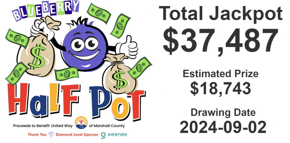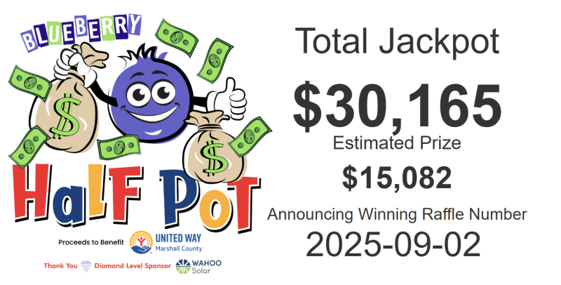 This year’s Blueberry Half Pot (50/50) raffle reached a grand total of $30,165, meaning the full pot will benefit UWMC and a network of nonprofits serving Marshall County to improve the education, health and financial stability of every person in our local communities.